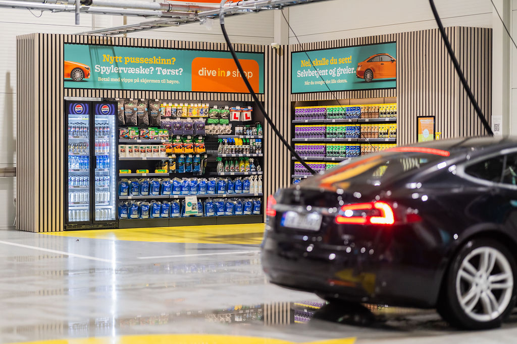 I vår selvbetjente shop kan du enkelt kjøpe spylevæske og andre bilpleieprodukter. På Dive In Shop finner du det du trenger til din bil, samt forfriskninger til sjåføren. Her kan du kjøpe bilpleieprodukter til både innvendig og utvendig bruk, spylevæske, bildufter og kalde forfriskelser.