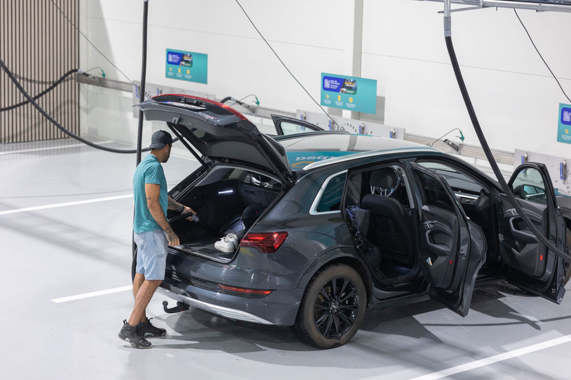 Støvsugerene starter automatisk når du løfter opp slangen fra holderen. Støvsugerhallen er gratis å benytte for alle som kjøper bilvask.