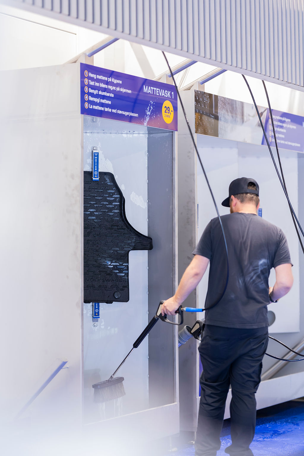 Om du er bedriftskunde eller har vaskeabonnement kan du taste inn bilens registreringsnummer for å starte mattevaskeren.